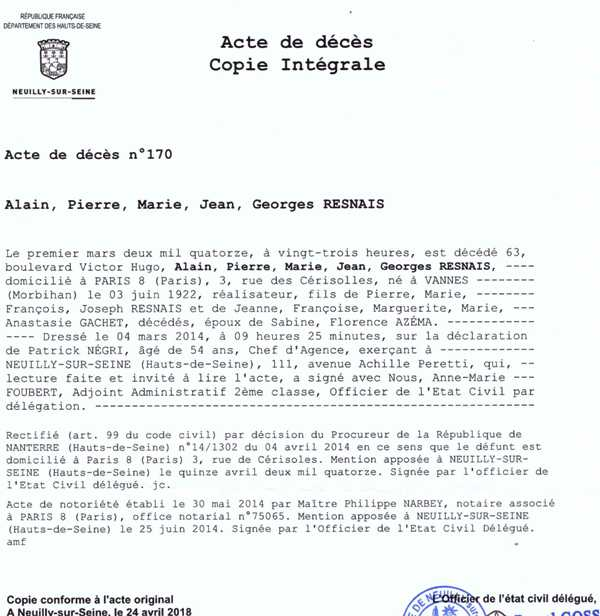 2014 Acte de décès (Neuilly-sur-Seine, France)