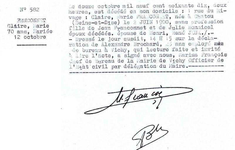1970 Acte de décès (Vichy, France)