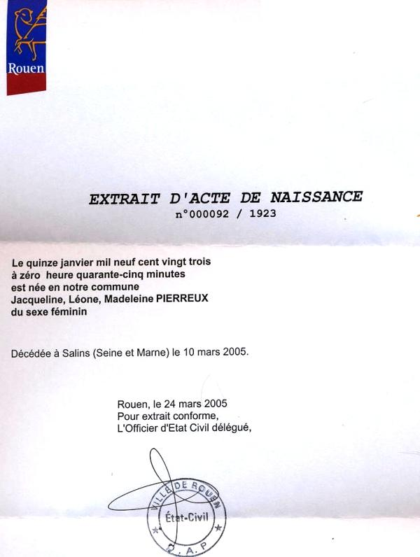 1923 Acte de naissance (Rouen, France)