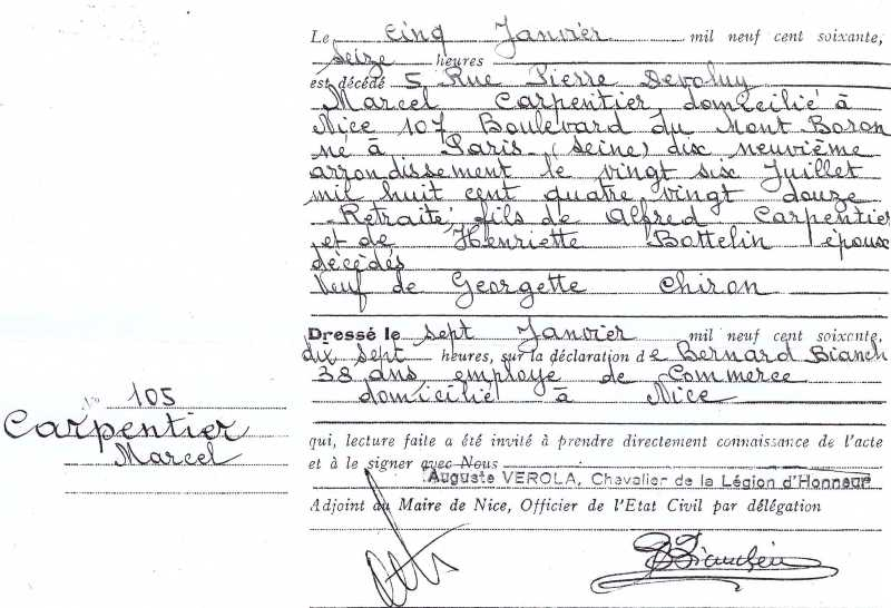 1960 Acte de décès (Nice, France)