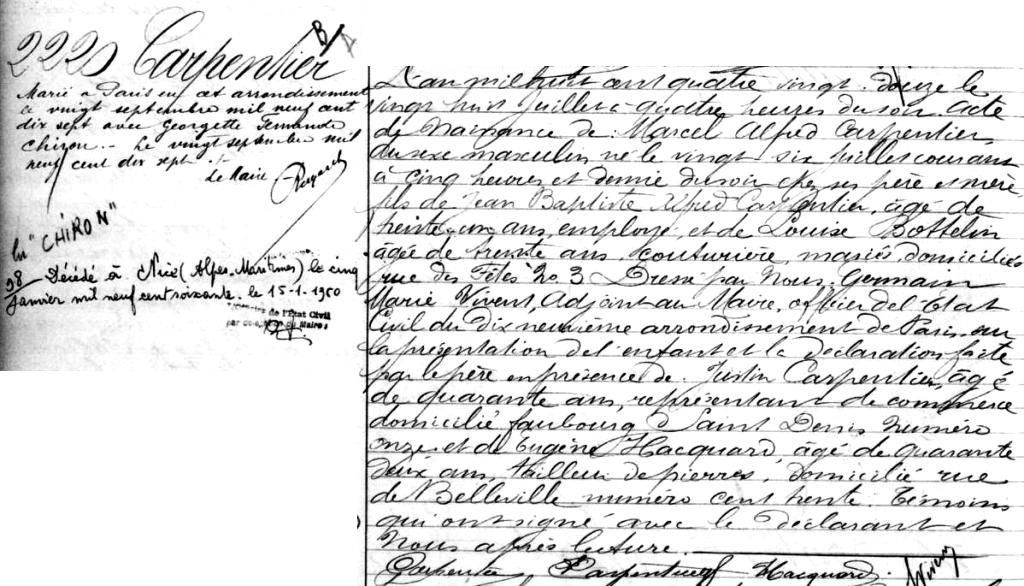 1892 Acte de naissance (Paris 19ème, France)