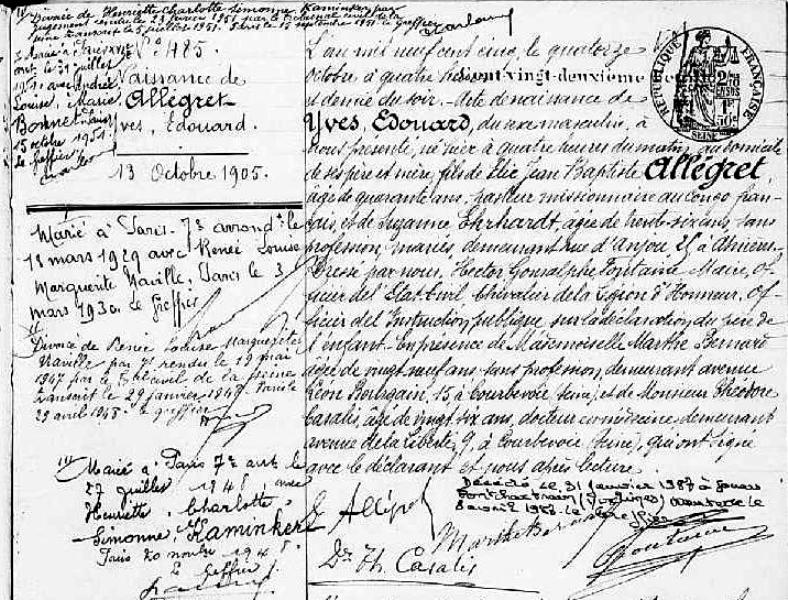1905 Acte de naissance (Asnières-sur-Seine, France)