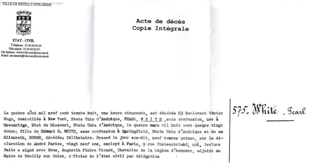 1938 Acte de décès (Neuilly-sur-Seine, France)