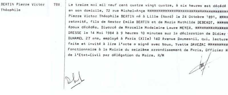 1984 Acte de décès (Paris 16ème, France)