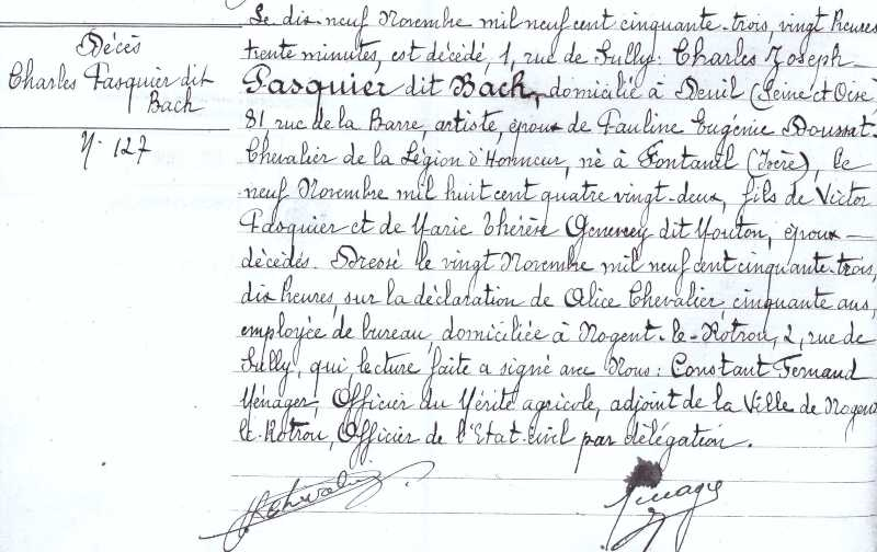 1953 Acte de décès (Nogent-le-Rotrou, France)