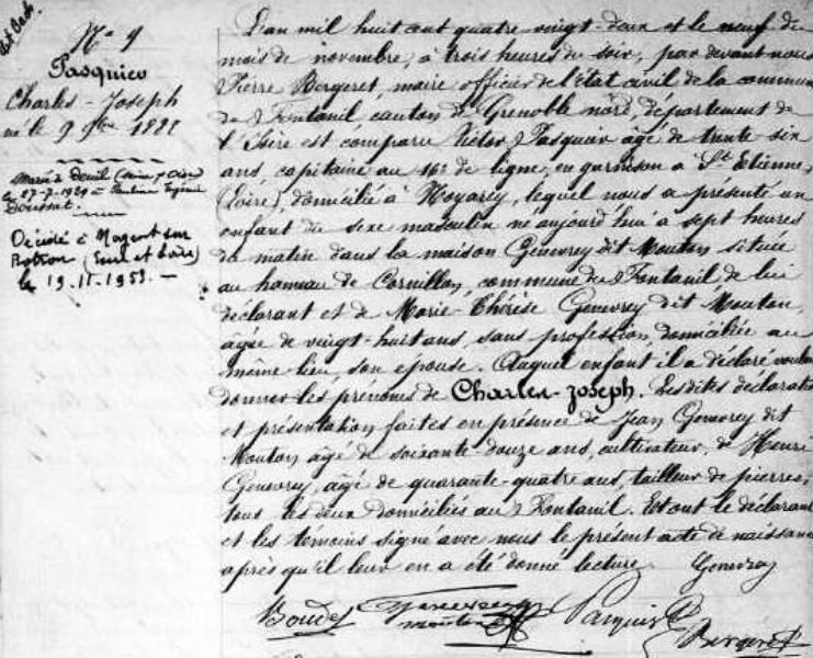 1882 Acte de naissance (Fontanil-Cornillon, France)