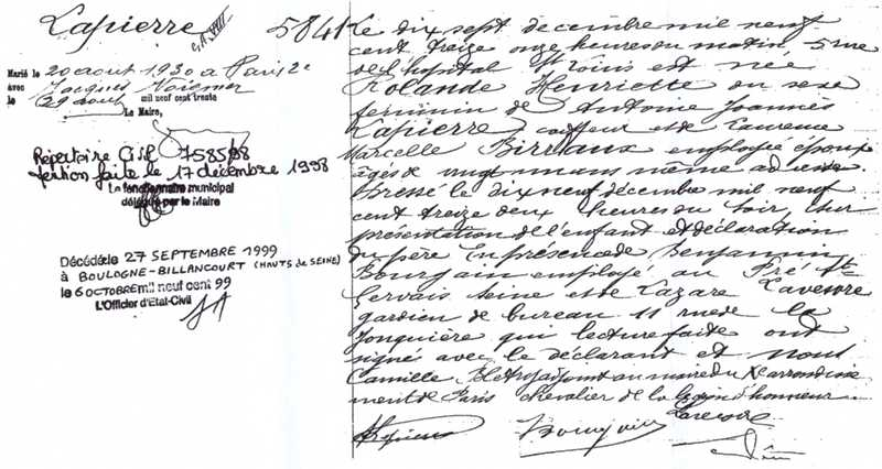 1913 Acte de naissance (Paris 10ème, France)