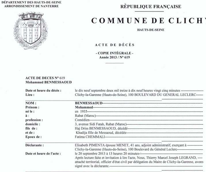 2013 Acte de décès (Clichy-la-Garenne, France)