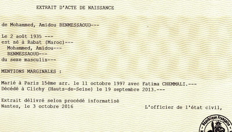 1935 Acte de naissance (Rabat, Maroc)