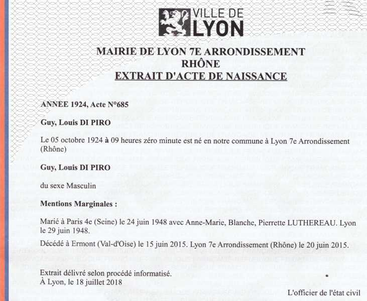1924 Acte de naissance (Lyon 7ème, France)