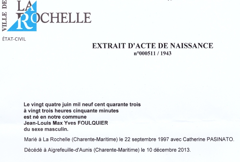 2013 Acte de décès (Aigrefeuille-d’Aunis, France)