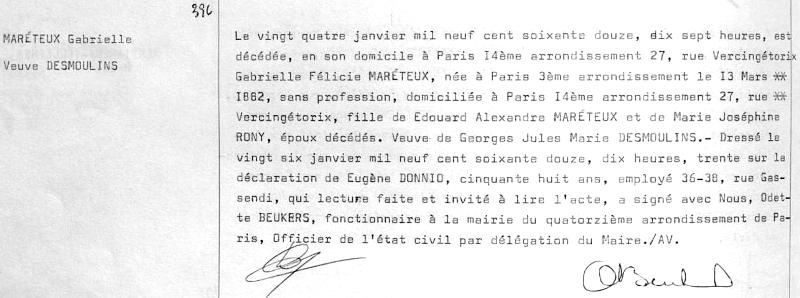 1972 Acte de décès (Paris 14ème, France)