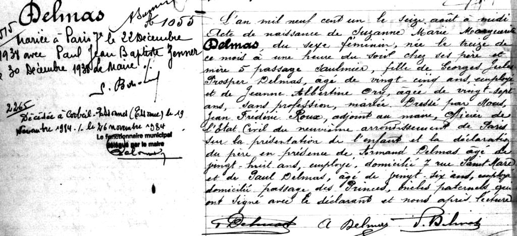 1901 Acte de naissance (Paris 9ème, France)