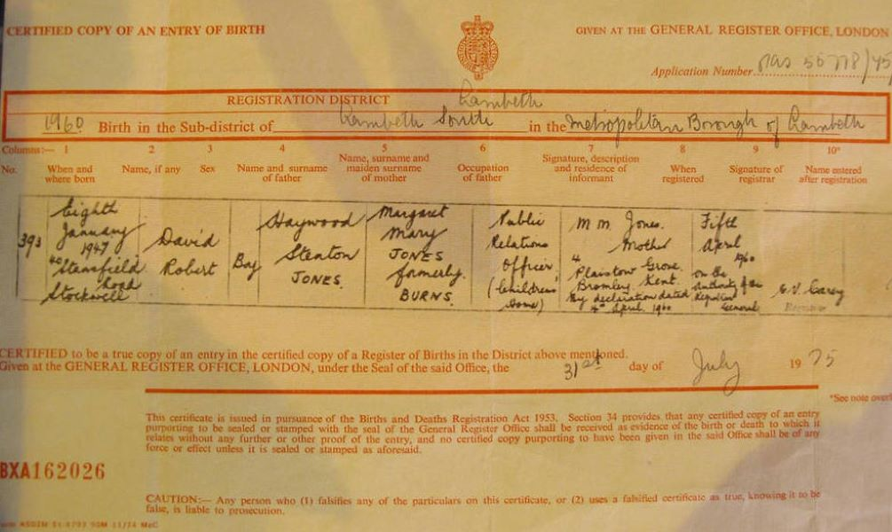 1947 Acte de naissace (Londres, Royaume-Uni)