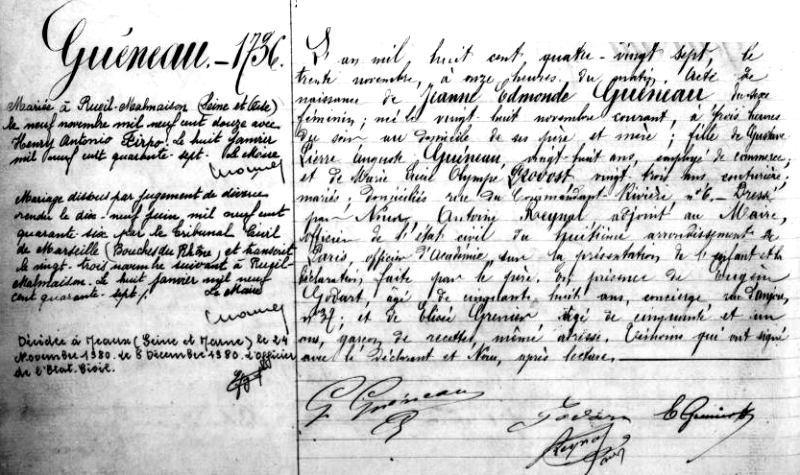 1887 Acte de naissance (Paris 8ème, France)