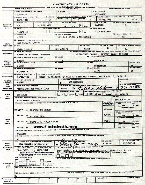 1995 Acte de décès (Los Angeles, Californie, USA)