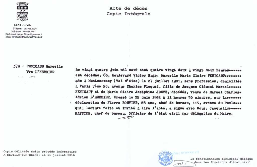 1982 Acte de décès (Neuilly-sur-Seine, France)