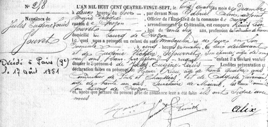 1887 Acte de naissance (Crozon, France)