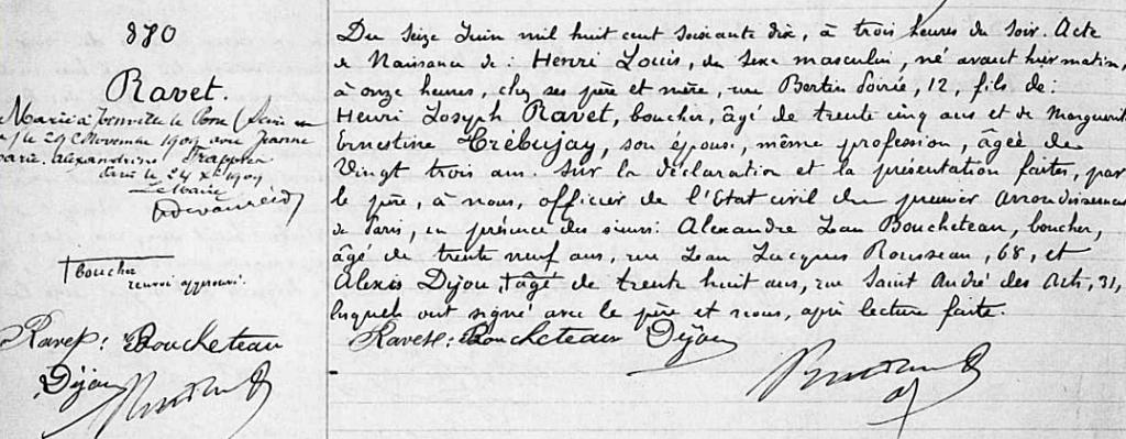 1870 Acte de naissance (Paris 1er, France)