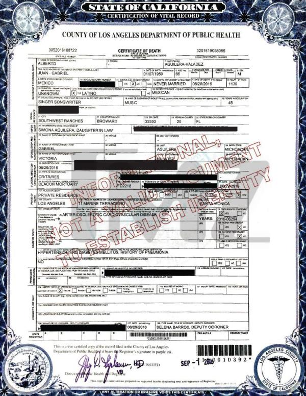 2016 Acte de décès (Santa Monica, Californie, USA)