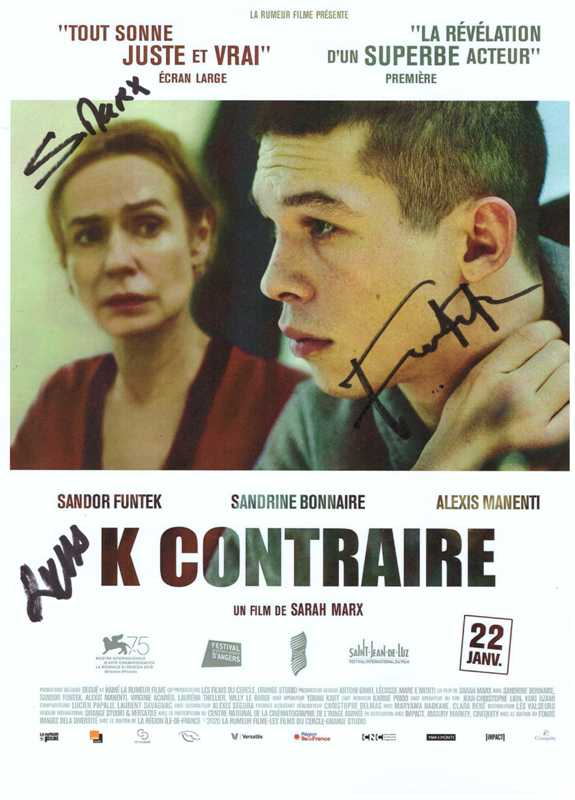 2020 Affiche dédicacée de «K Contraire» |  2020 Affiche dédicacée de «L’homme au lion» |  2020 Avant-première de «K Contraire» de Sarah Marx, le 14 janvier © Philippe PELLETIER |  2020 Avant-première de «K Contraire» de Sarah Marx, le 14 janvier, avec Nassim Si Ahmed © Moïse HODEBOURG |