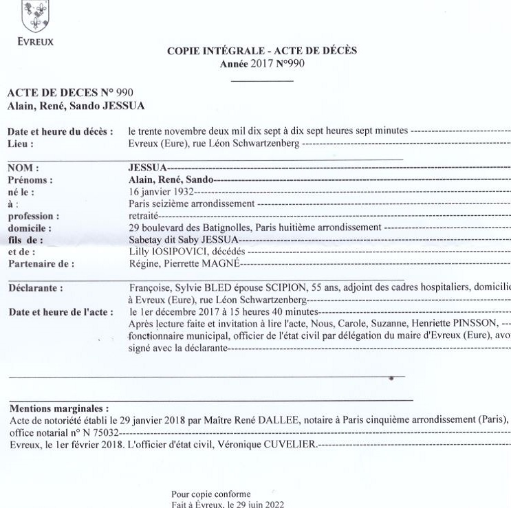2017 Acte de décès (Evreux, France)