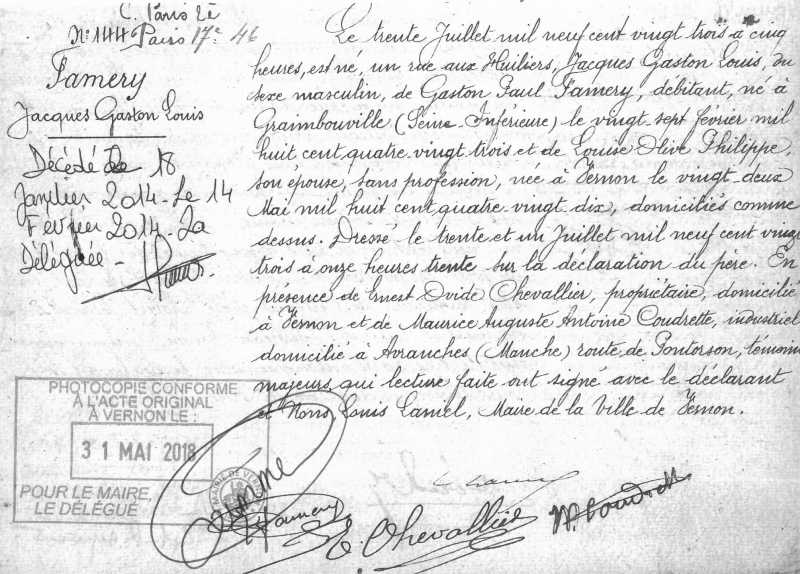1923 Acte de naissance (Vernon, France)