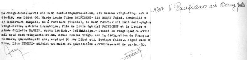 1951 Acte de décès (Paris 14ème, France)