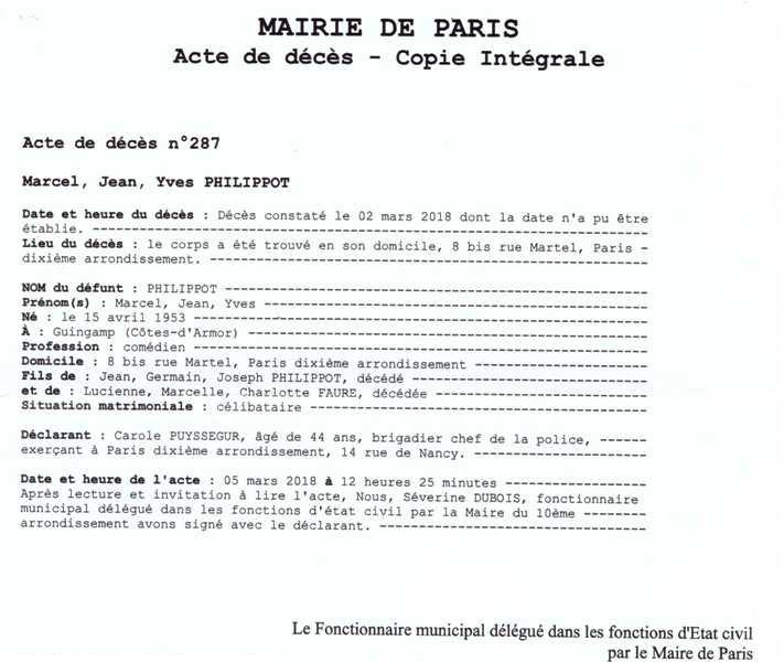 2018 Acte de décès (Paris 10ème, France)
