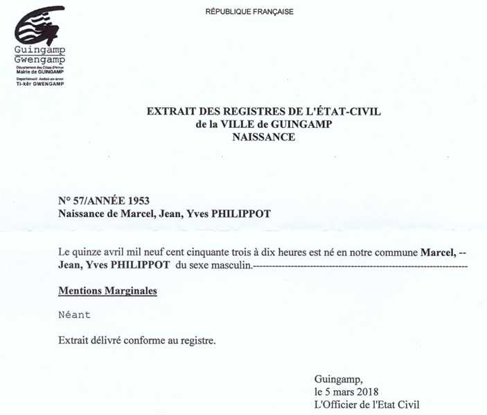 1953 Acte de naissance (Guingamp, France)