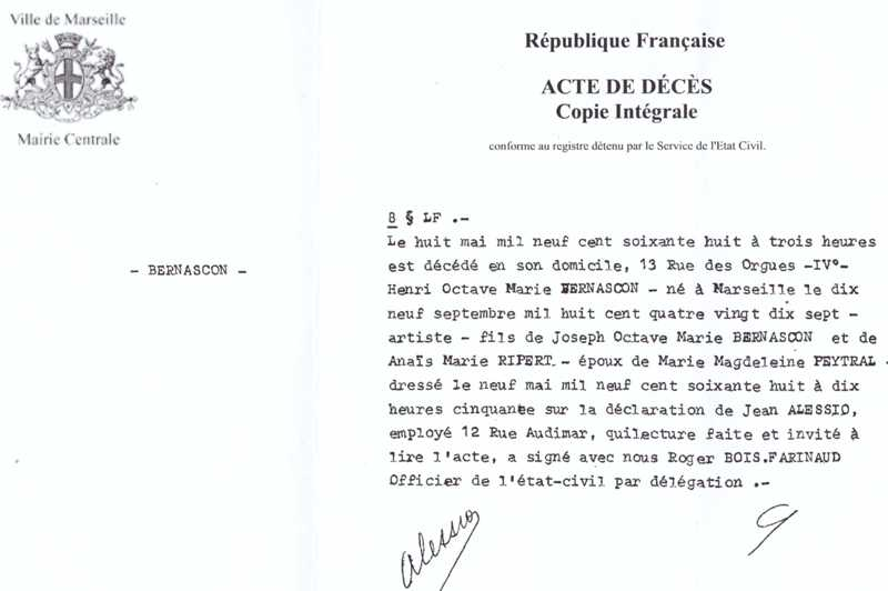 1968 Acte de décès (Marseille 4ème, France)