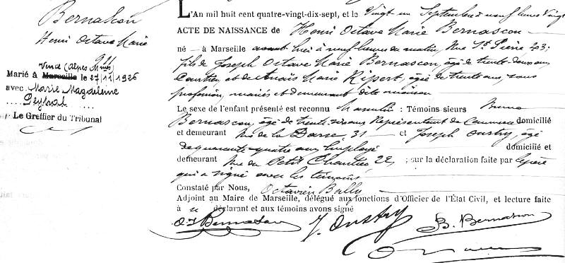 1897 Acte de naissance (Marseille, France)