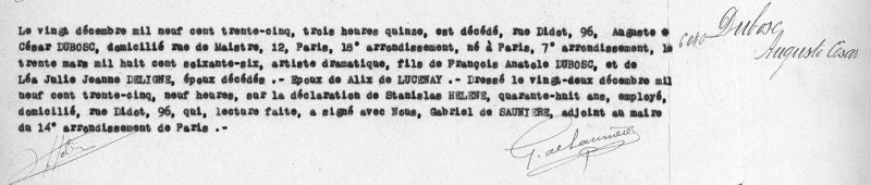 1935 Acte de décès (Paris 14ème, France)