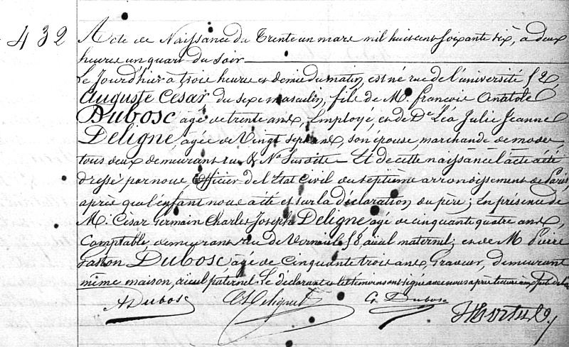 1866 Acte de naissance (Paris 7ème, France)