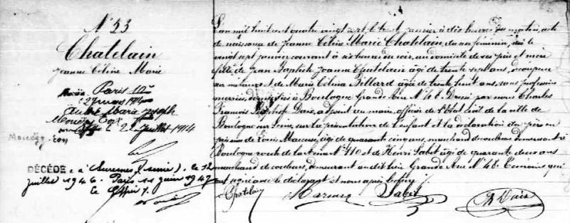 1887 Acte de naissance (Boulogne-sur-Seine, France)