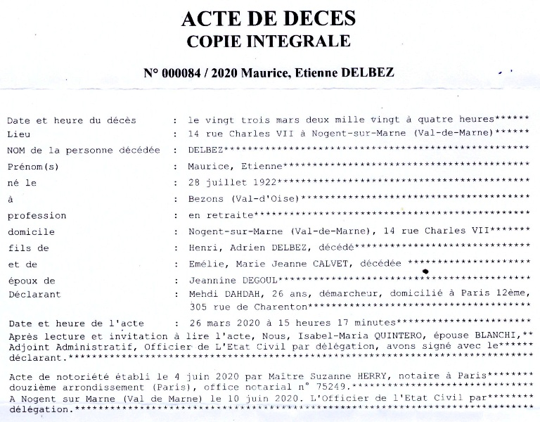 2020 Acte de décès (Nogent-sur-Marne, France)