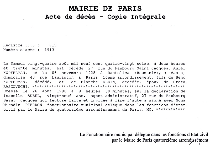 1996 Acte de décès (Paris 14ème, France)