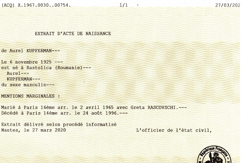 1925 Acte de naissance (Răstolița, Roumanie)