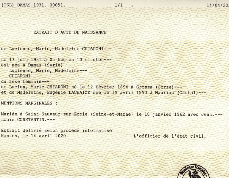 1931 Acte de naissance (Damas, Grand Liban)