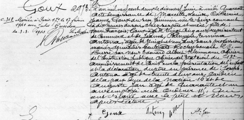 1902 Acte de naissance (Paris 18ème, France)