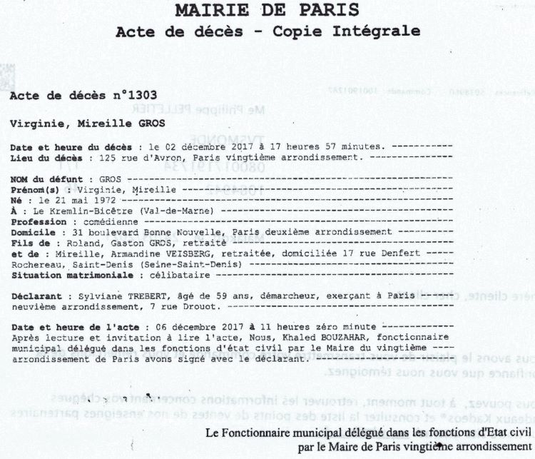 2017 Acte de décès (Paris 20ème, France)