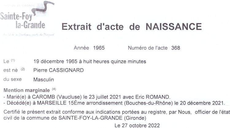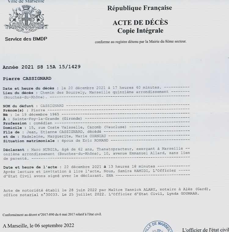 2021 Acte de décès (Marseille 15ème, France)