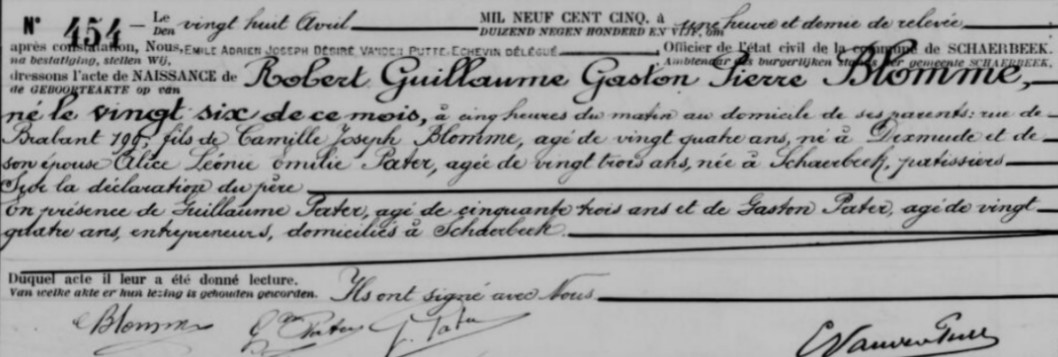 1905 Acte de naissance (Schaerbeek, Belgique)