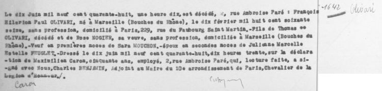 1948 Acte de décès (Paris 10ème, France)