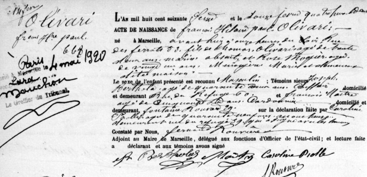 1876 Acte de naissance (Marseille 2ème, France)