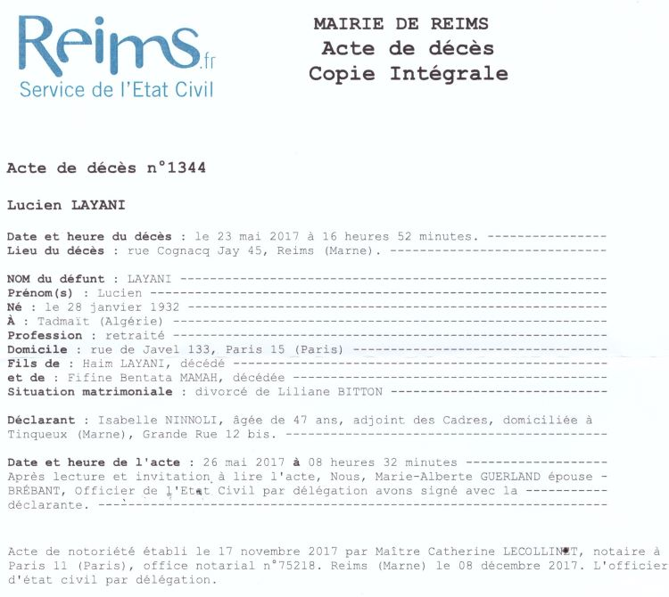 2017 Acte de décès (Reims, France)