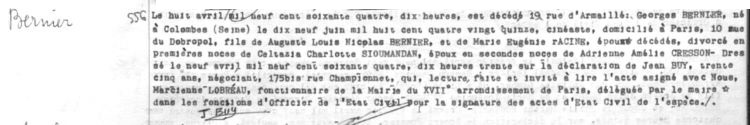 1964 Acte de décès (Paris 17ème, France)