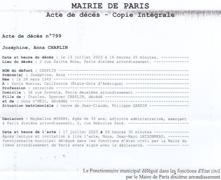2023 Acte de décès (Paris 10ème, France)