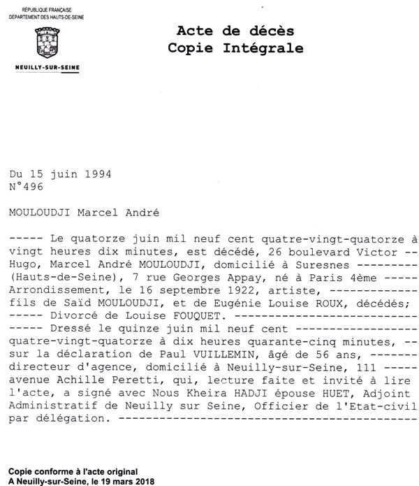 1994 Acte de décès (Neuilly-sur-Seine, France)