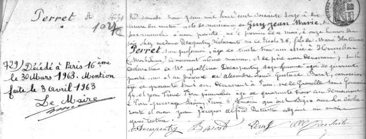 1963 Acte de décès (Paris 16ème, France)